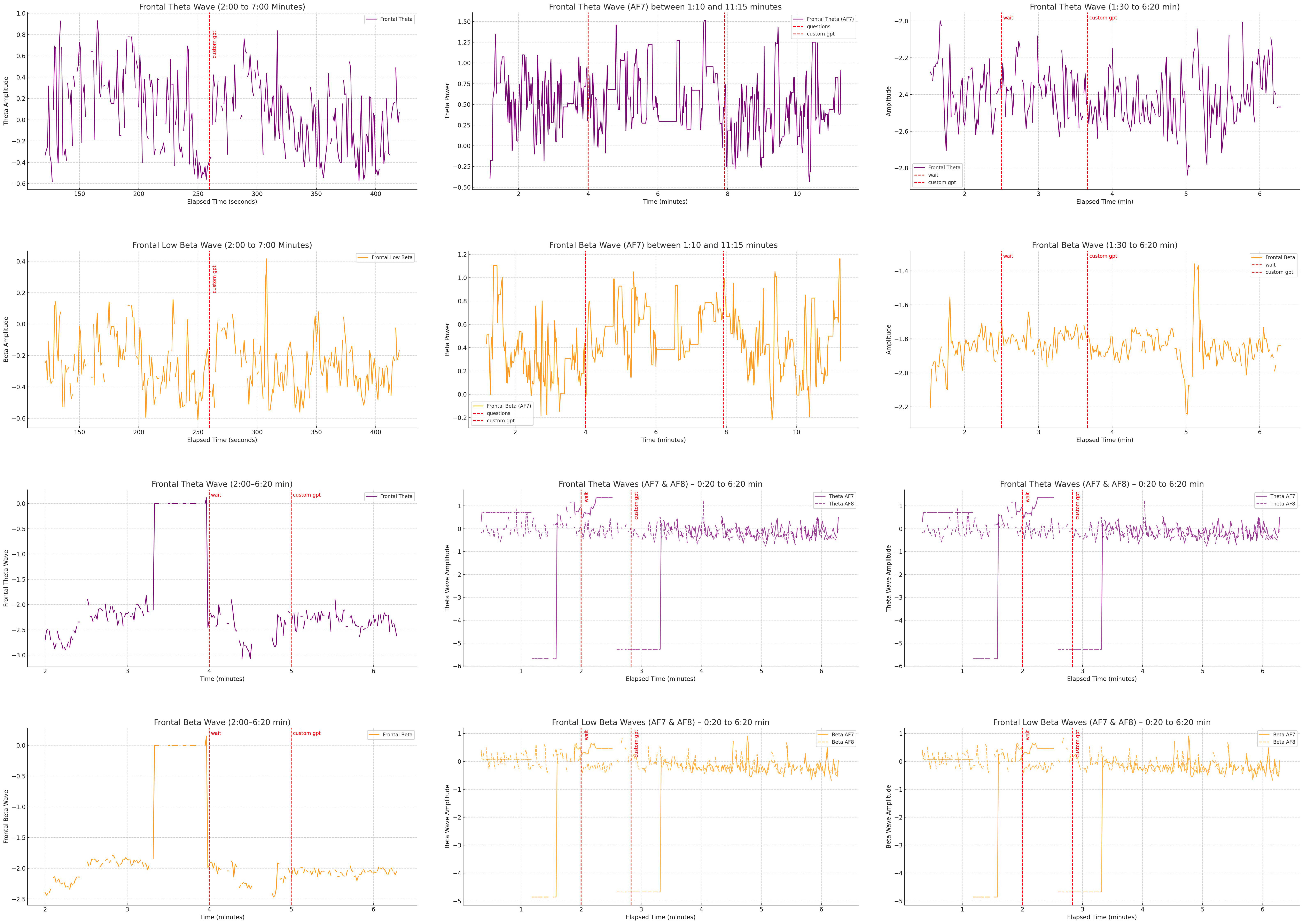 EEG measured electrical activity of the user's brain during their task performance. The results highlighted an increase in the Beta waves when users interacted with the critical thinking features among many users. As beta brain waves measure active cognitive process, this validates my hypothesis that design intervention can indeed improve cognitive engagement during gen-AI use.