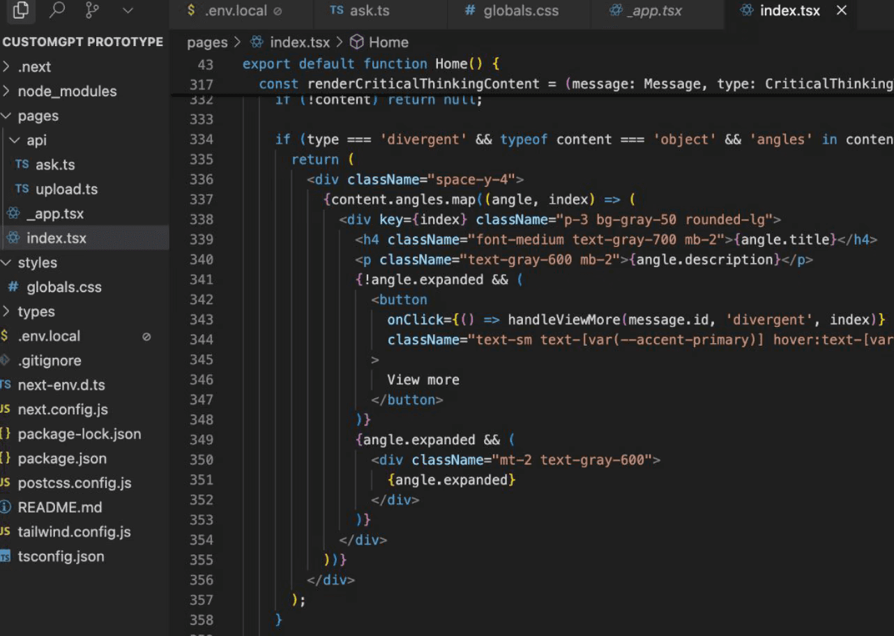 Given the limited timeframe for this study, it was imperative to prototype and test fast, so that I may iterate on the design. I used cursor and OpenAI API to create the first version of the critical chatbot to test the features.