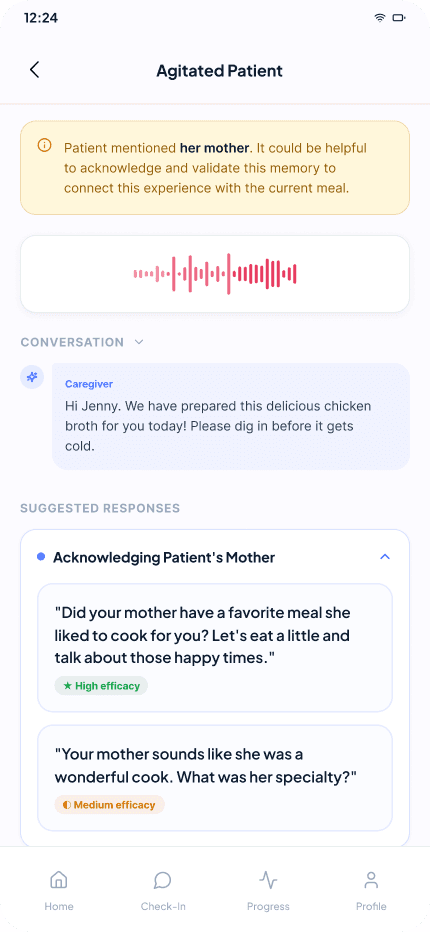 We interviewed 20+ caregivers for elders with neurodegenerative diseases, and identified communication during ADLs (activities of daily lives) to be a huge pain point.