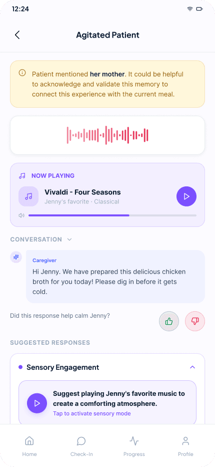 Unsuccessful communication and resultant agitation in dementia patients poses a significant challenge for caregivers. These behaviors, in turn, place a substantial emotional and physical strain on caregivers, contributing to high levels of stress and burnout.