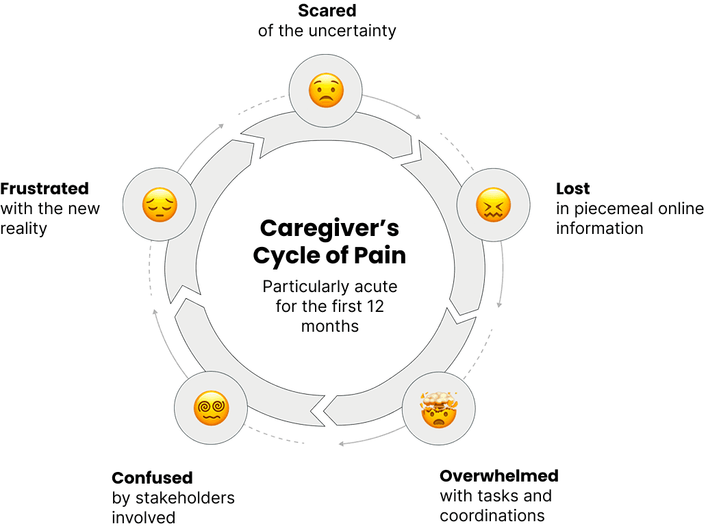 Offers a high-level overview of caregiving, equipping them with guiding and reflective questions around 5 key areas: