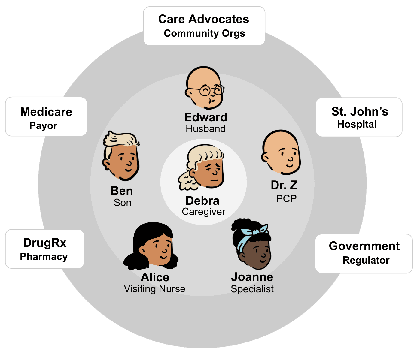 Debra’s decisions and experience are influenced by several institutions with systemic influence but low touch